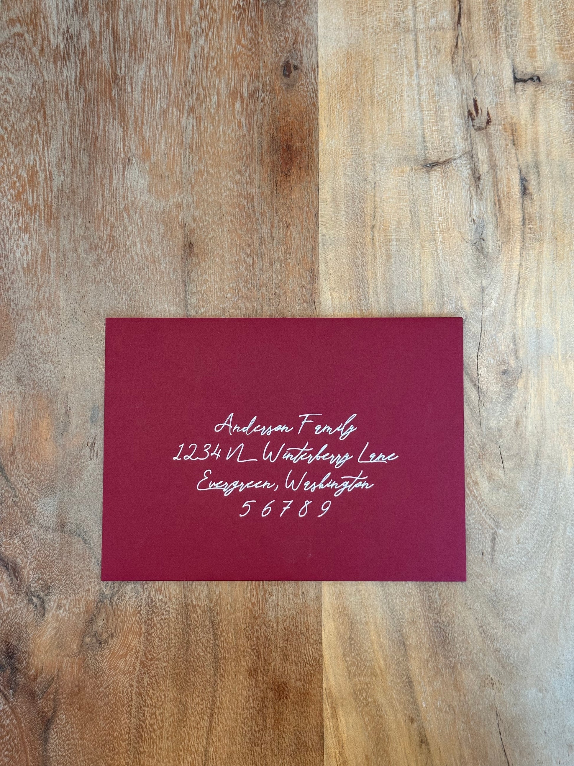 Clean, crisp, and custom — our personalized envelopes add an elevated finishing touch to your Christmas cards.